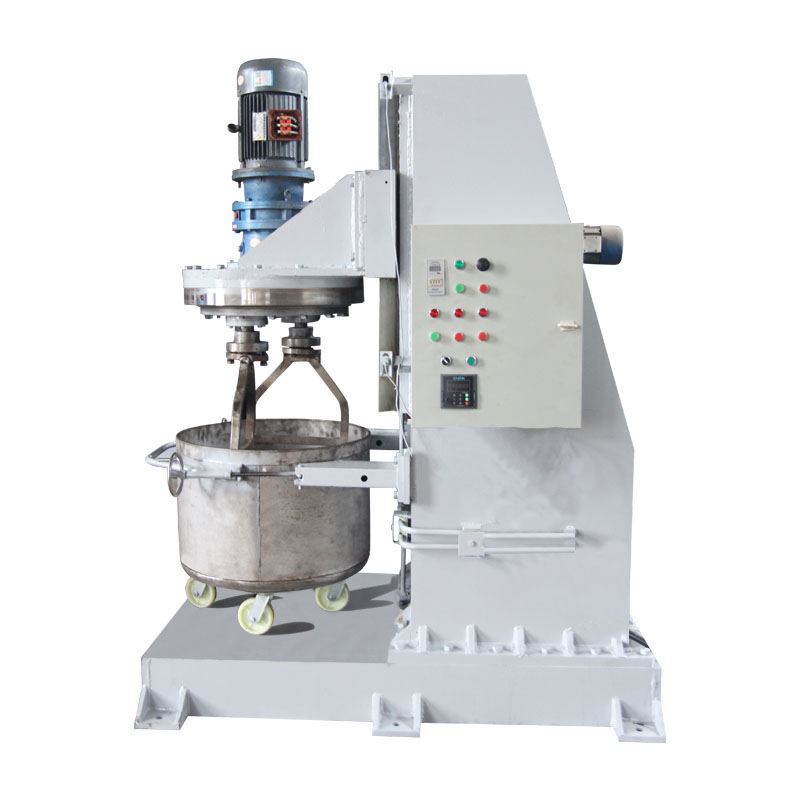 3、料筒:物料在不銹鋼材質(zhì)的料筒內(nèi)進(jìn)行攪拌。料筒裝在升降平臺(tái)上,通過油缸實(shí)現(xiàn)升降。料筒下部裝有滾輪,可以推進(jìn)。拉出。當(dāng)攪拌器旋轉(zhuǎn)時(shí),料筒由擺線針輪減速機(jī)通過凸輪和滾輪帶動(dòng)同時(shí)旋轉(zhuǎn),旋轉(zhuǎn)方向可以選擇??刂泼姘迳涎b有變頻調(diào)節(jié)旋鈕,可以根據(jù)工藝要求調(diào)節(jié)旋轉(zhuǎn)速度。